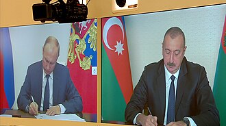 9 noyabr 2020-ci il tarixində Azərbaycan, Rusiya və Ermənistanın dövlət başçıları tərəfindən 9 maddədən ibarət atəşkəs bəyanatı imzalanır. Bəyanatda 10 noyabr 2020-ci il tarixində Moskva vaxtı ilə 00:00-dan etibarən tam bir atəşkəs və Dağlıq Qarabağ münaqişəsi bölgəsindəki bütün hərbi əməliyyatların dayandırılması elan edilir.