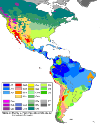 Amerikanın iqlimi bölgədən bölgəyə əhəmiyyətli dərəcədə dəyişir. Tropik yağış meşələri iqlimi Amazon enliklərində, Amerika bulud meşələrində, Floridanın cənub-şərqində və Darien Qapda baş verir. Qayalı dağlarda və And dağlarında quru və kontinental iqlim müşahidə olunur. Çox vaxt bu dağların yüksəklikləri qarla örtülü olur. Cənub-Şərqi Şimali Amerika tornadoların və qasırğaların baş verməsi ilə məşhurdur, onların böyük əksəriyyəti ABŞ-nin Tornado Xiyabanında,, eləcə də Şimali Amerikada qışın sonu və əvvəlində cənubdakı Dixie Xiyabanında baş verir. Çox vaxt Karib dənizinin hissələri qasırğaların şiddətli təsirlərinə məruz qalır. Bu hava sistemləri Kanadadan gələn quru, sərin hava ilə Atlantikdən gələn nəm, isti havanın toqquşması nəticəsində əmələ gəlir.