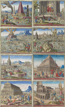 Hollandiyalı rəssam Marten van Hemskerk tərəfindən təsvir edilən, dünyanın yeddi möcüzəsi haqqında olan rəsm əsərlərinin kolajı.