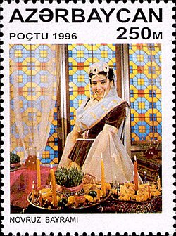 Azərbaycanın poçt markası. Azərbaycanlı qadın bayram xonçası ilə