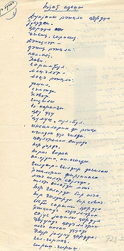 " Deyilənə görə, mən 1910-cu ildə mayın 19-da anadan olmuşam. Deyilənə görə deyirəm, çünki bu tarix düzgün olmaya bilər. Anadan olduğum ili və günü babam əlyazması Quranın səhifələrindən birində qeyd edibmiş. Babamı dəfn edən zaman (mənim onda üç-dörd yaşım olardı) Quran yoxa çıxıb.